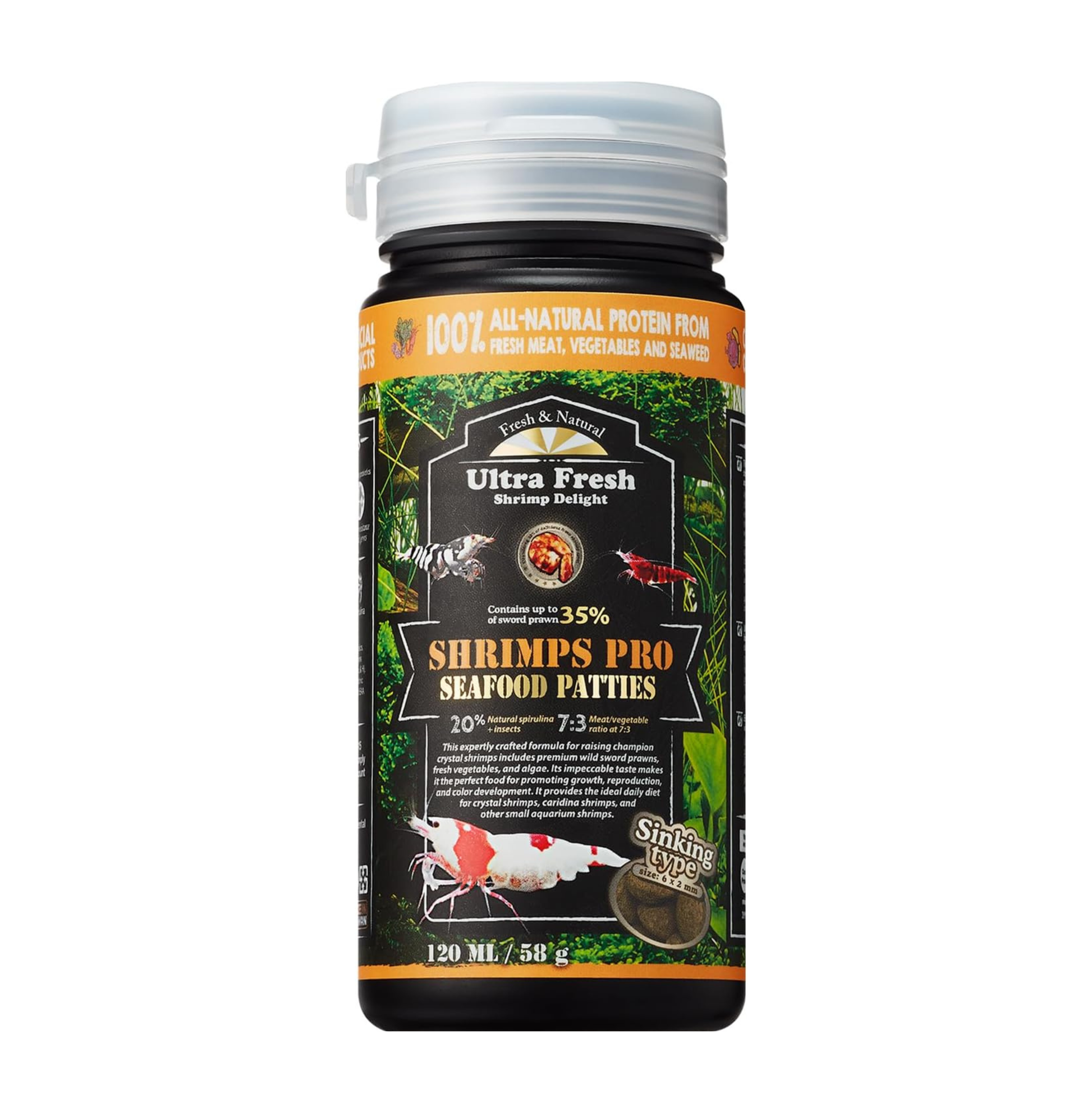 Ultra Fresh Shrimp Pro Patties are premium, soft mini discs crafted to meet the specific dietary needs of Neocaridina, and Caridina shrimp, including Crystal Reds, Taiwan Bees, and other delicate freshwater species. Developed over three years with expert breeders, this specialized formula supports healthy molting, vibrant coloration, and successful breeding in your most prized shrimp.